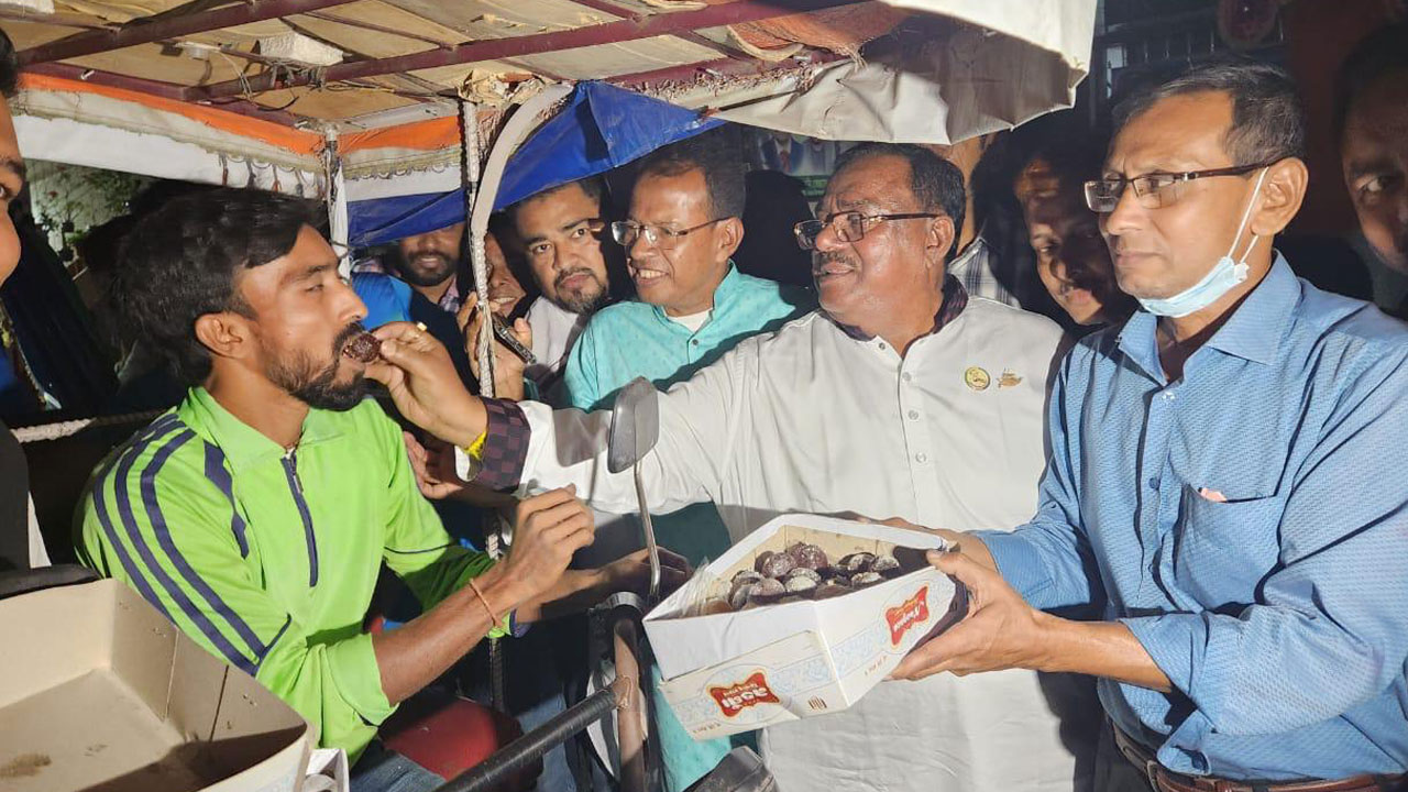 মিষ্টি বিতরণকালে নওগাঁ জেলা আওয়ামী লীগের সহ-সভাপতি এমএ খালেক, সদর উপজেলা আওয়ামী লীগের সাধারণ সম্পাদক রেজাউল করিম, নওগাঁ চেম্বার অব কমার্সের সভাপতি ও এফবিসিসিআইয়ের পরিচালক ইকবাল শাহরিয়ার রাসেল, জেলা আওয়ামী লীগের যুগ্ম সাধারণ সম্পাদক জাভেদ জাহাঙ্গীর সোহেল, বিভাস মজুমদার গোপাল, জেলা আওয়ামী লীগের দপ্তর সম্পাদক আব্দুল লতিফ বকুল, যুবলীগের সাধারণ সম্পাদক বিমান কুমার রায়সহ অন্যান্য নেতাকর্মীরা উপস্থিত ছিলেন।