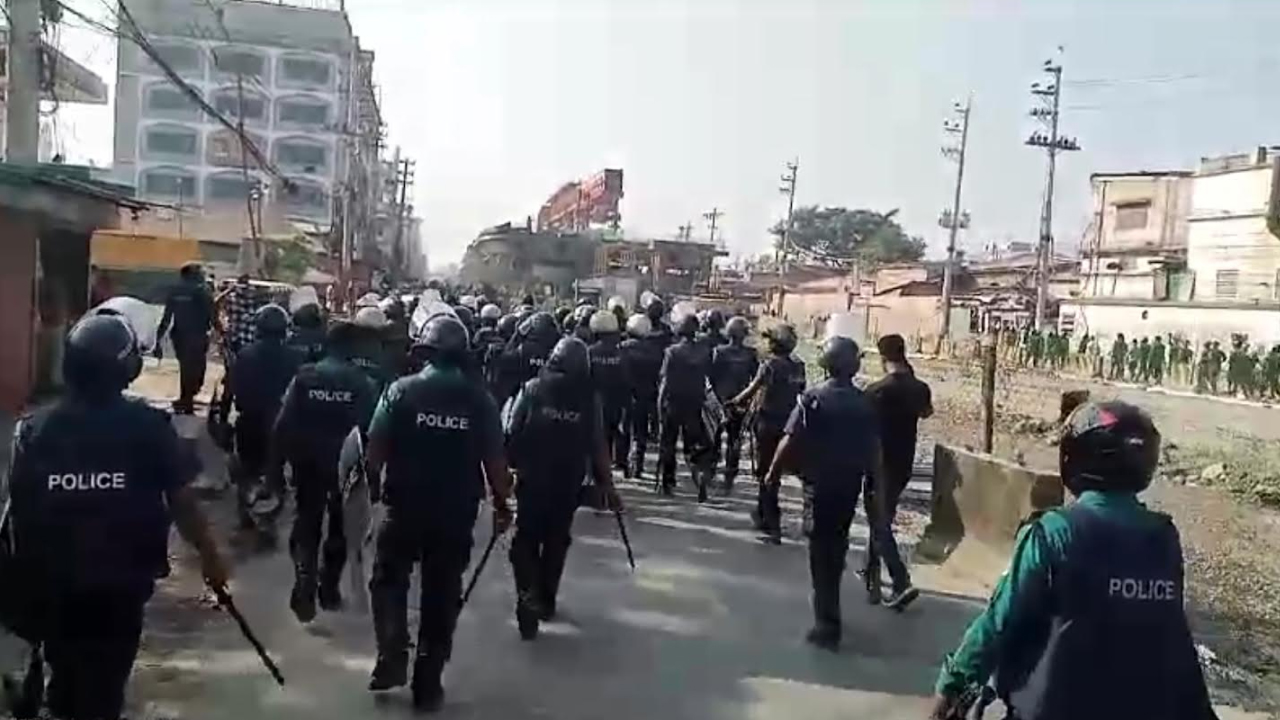 গাজীপুরে শ্রমিক-পুলিশ সংঘর্ষ, টিয়ারশেল নিক্ষেপ
