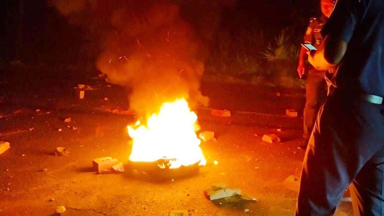 রাজবাড়ীতে মহাসড়কে টায়ার জ্বালিয়ে ককটেল বিস্ফোরণ