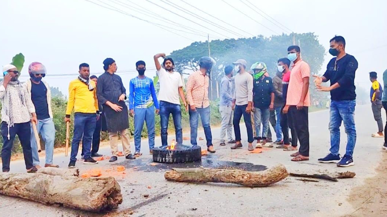 মহাসড়কে গাছের গুঁড়ি-টায়ার পুড়িয়ে বিএনপির অবরোধ