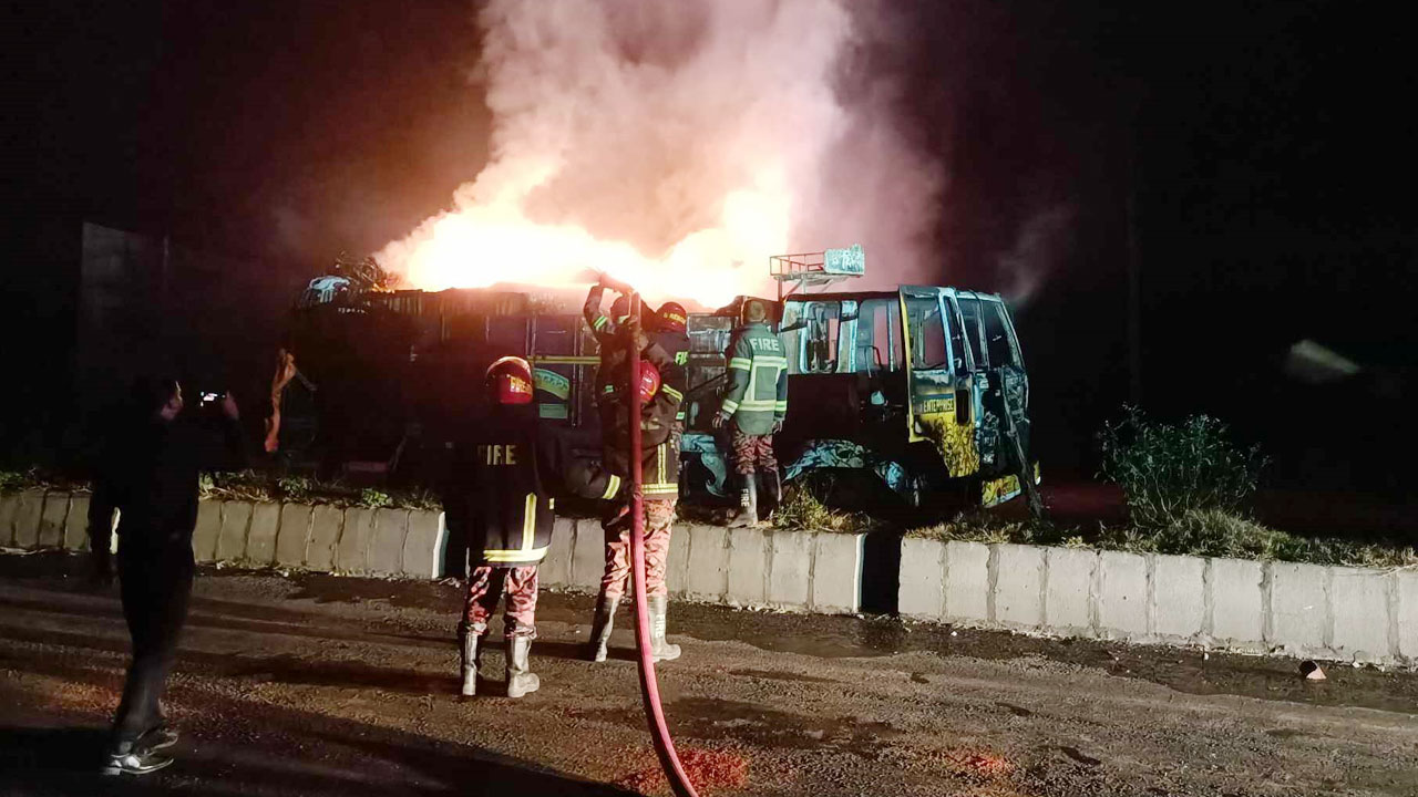 বগুড়ায় পেট্রল ঢেলে ট্রাকে আগুন