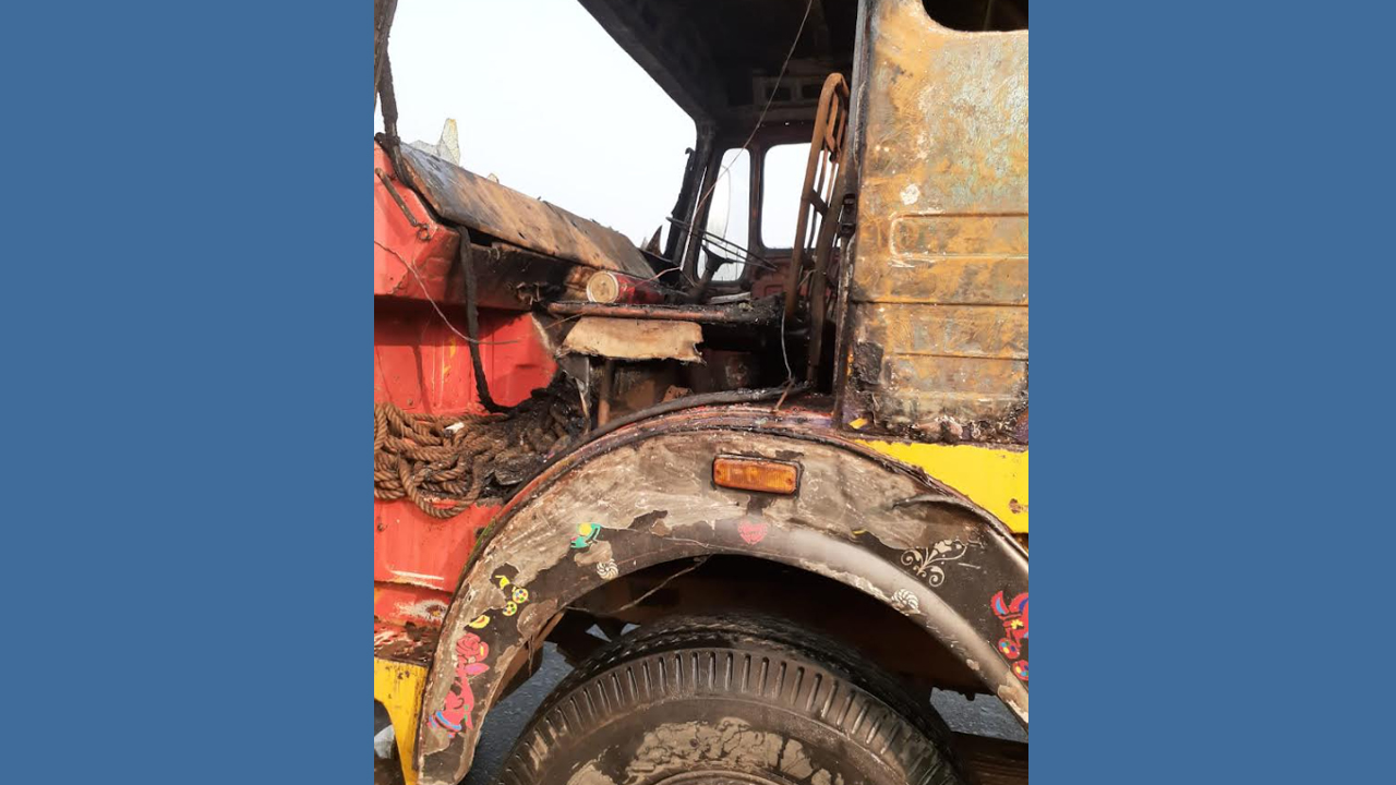 সিরাজগঞ্জে মহাসড়কে ট্রাকে আগুন