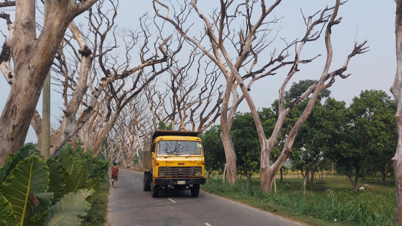 সাতক্ষীরা জেলার ৯টি প্রধান সড়কের পাশে রয়েছে সারি সারি রেইনট্রি গাছ। গাছগুলো শুকিয়ে গেছে অনেক আগে। শুকনো গাছের ডাল ও কাঠ ভেঙে প্রতিদিনই ঘটছে ছোট-বড় দুর্ঘটনা। সামান্য বাতাস কিংবা ঝড়-বৃষ্টি হলেই আহত হচ্ছেন পথচারী ও স্থানীয় মানুষজন। বাধ্য হয়ে জীবনের ঝুঁকি নিয়ে চলছে পথচারী ও যানবাহন। শুকনো গাছগুলো নিয়ে কর্তৃপক্ষের যথাযথ হস্তক্ষেপ না থাকায় এখন তা সৃষ্টি হয়েছে মরণ ফাঁদে।