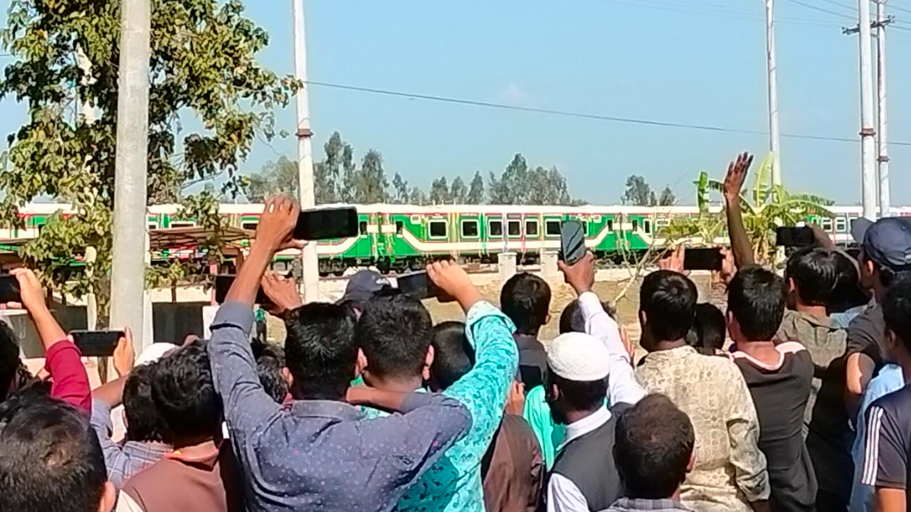 ছুটে চলল ট্রেন, রেললাইনের পাশে দাঁড়িয়ে হাজারো মানুষের অভিবাদন