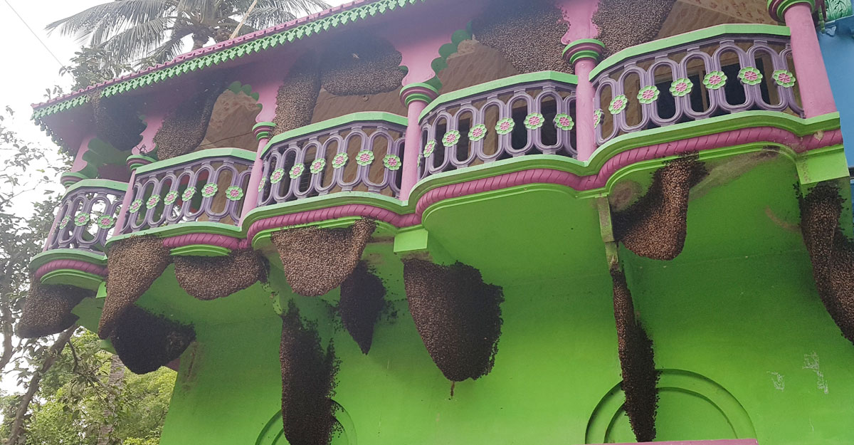 ‘মৌমাছি বাড়ি’ নাম শুনে অবাক হচ্ছেন? বেলকনিসহ বাড়ির চারপাশে ২৬টি বড় বড় মৌমাছির চাক। তারা বাড়িটিকে ঘিরে রেখেছে। বছরের ৮ মাস তারা এ বাড়িতে অবস্থান করে। এলাকায় বাড়িটি এখন মৌমাছির বাড়ি হিসেবে পরিচিত। কেউ মৌমাছি দেখতে আবার কেউ ছবি তুলতে যায় বাড়িটিতে। পরিবারের সদস্যদের মতোই মানুষের সঙ্গে ৭ বছর ধরে বসবাস করছে এ সকল মৌমাছি।
