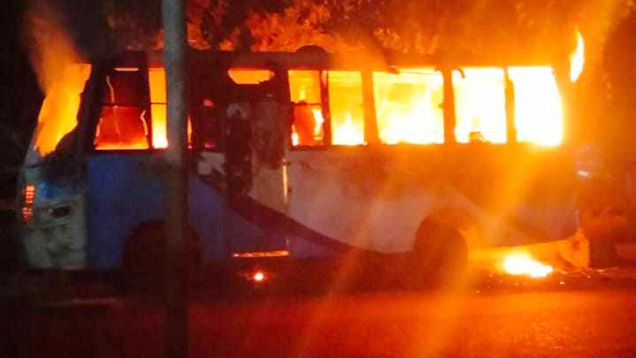 নারায়ণগঞ্জে বাসে আগুন দিয়েছে দুর্বৃত্তরা
