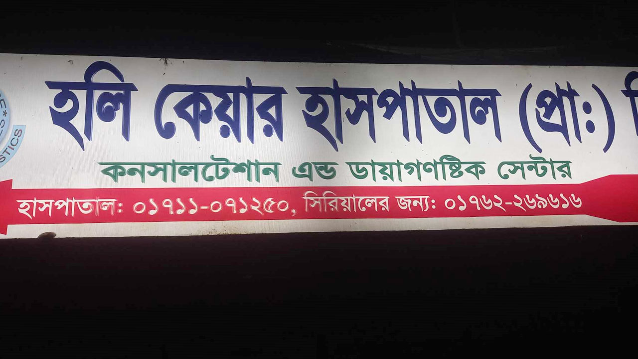 ভুক্তভোগী সাংবাদিক বিপ্লব হোসেন জানান, ১৪ দিন আগে জ্বর-কাশি সমস্যা নিয়ে হলি কেয়ার হাসপাতালে নিয়ে আসেন শিশুর বাবা সোলাইমান। পরে ওই শিশুকে ডা. এম এ কাইয়ুম চিকিৎসা দেন। চিকিৎসার এক পর্যায়ে ওই শিশুর নিউমোনিয়া হয়েছে বলে ১০ দিন ধরে চিকিৎসা দেওয়া হয়। এ সময় বাচ্চা ভালো আছেন বলে জানান চিকিৎসক। পরে হঠাৎ ১৩ দিনের মাথায় শিশুকে ঢাকায় নিতে বলেন। এরপর শিমুল নামে এক চিকিৎসক শিশুর হার্টের সমস্যার কথা জানান এবং দ্রুত ঢাকায় নিতে বলেন। পরে ঢাকায় নেওয়ার আগেই মারা যায় শিশুটি।