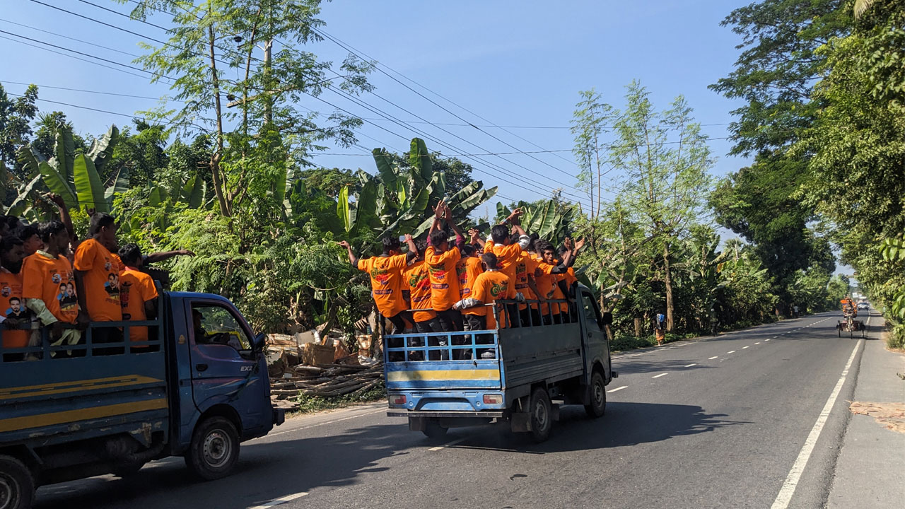 প্রধানমন্ত্রীর জনসভায় যোগ দিতে বাস, ট্রাক, মোটরসাইকেল ও পাঁচটি লঞ্চে করে খুলনার পথে যাচ্ছেন আওয়ামী লীগের নেতাকর্মীরা। সোমবার সকাল থেকে জেলার বিভিন্ন প্রান্ত থেকে আওয়ামী লীগের নেতাকর্মীরা সমাবেশের উদ্দেশ্যে রওনা দেন।