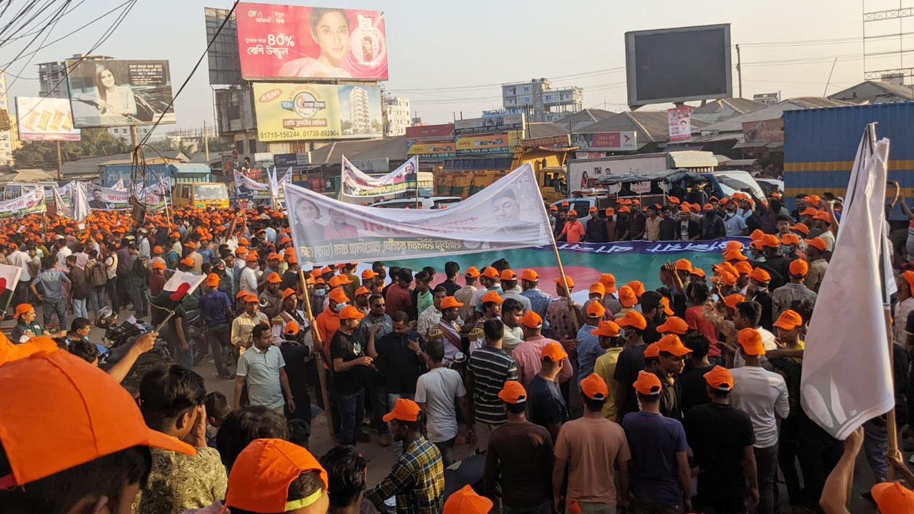 আশুলিয়ায় সড়ক বন্ধ করে যুবলীগের সমাবেশ, যানজটে ভোগান্তি