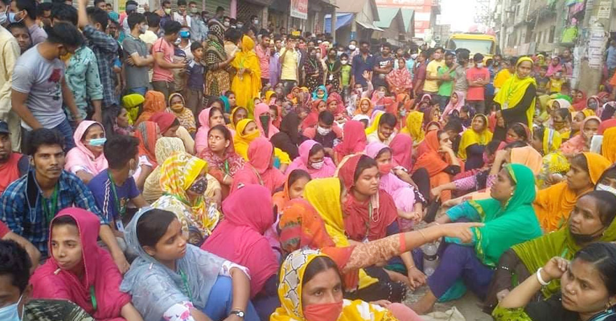 বকেয়া বেতনের দাবিতে সড়কে পোশাকশ্রমিকরা