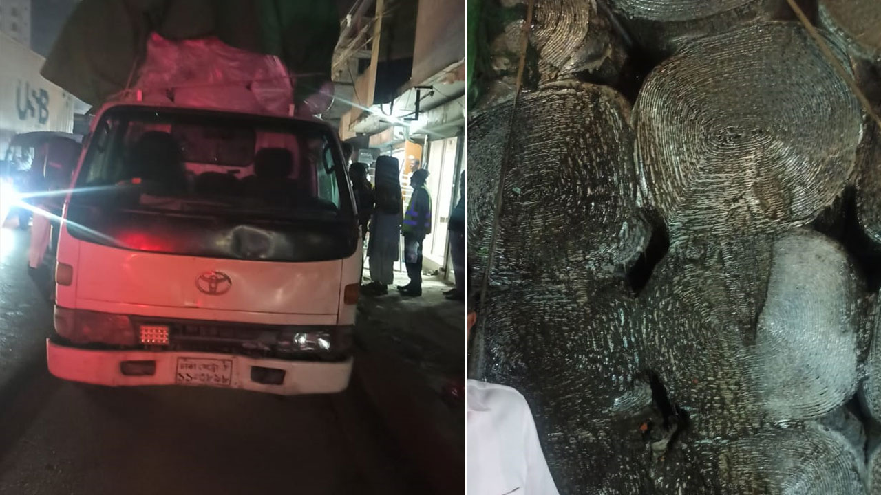 টঙ্গীতে পিকআপ ভ্যানে আগুন