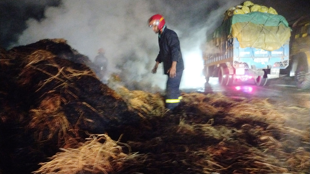 বগুড়ায় খড়বোঝাই ট্রাকে আগুন