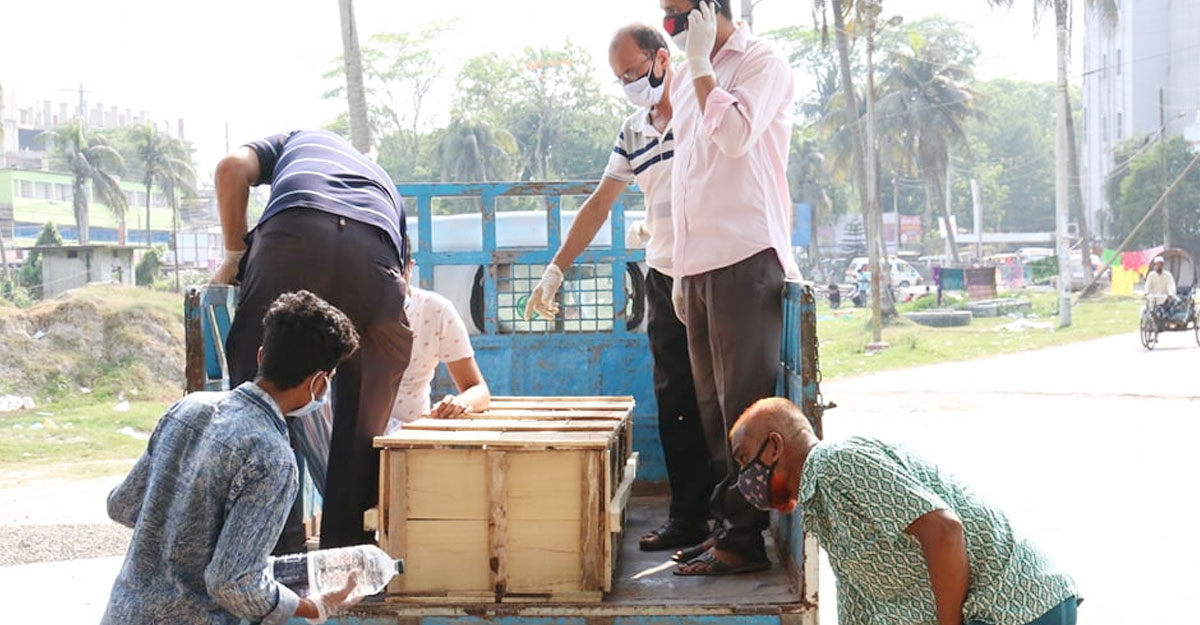 করোনায় মারা যাওয়া ব্যক্তির মরদেহ নিয়ে যাওয়া হচ্ছে