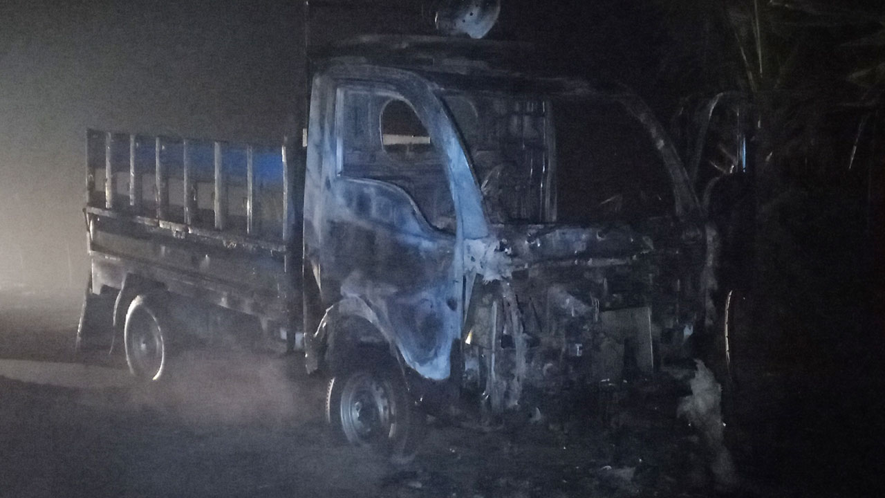 জয়পুরহাটে পিকআপ ভ্যানে আগুন