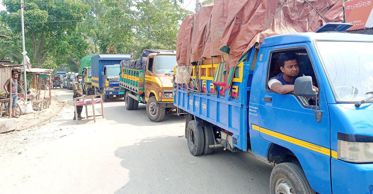 পারাপারের অপেক্ষায় যাত্রী ও পণ্যবাহী গাড়ি