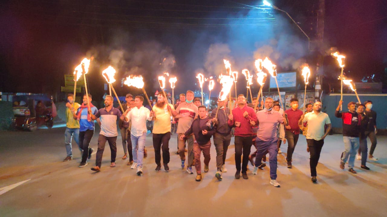 মঙ্গলবার (২১ নভেম্বর) রাত ৯টায় পটুয়াখালী রুস্তম মৃধা কালভার্ট থেকে মশাল মিছিল শুরু করে কলাতলা বাজারে এসে শেষ হয়।
