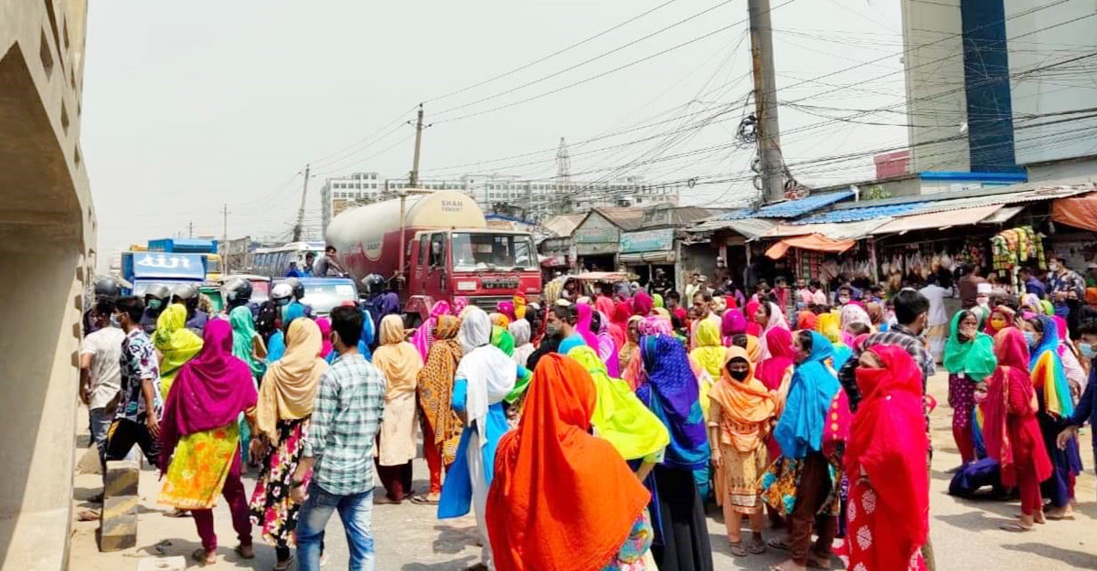 বেতনের দাবিতে মহাসড়ক অবরোধ করেছেন পোশাক শ্রমিকরা