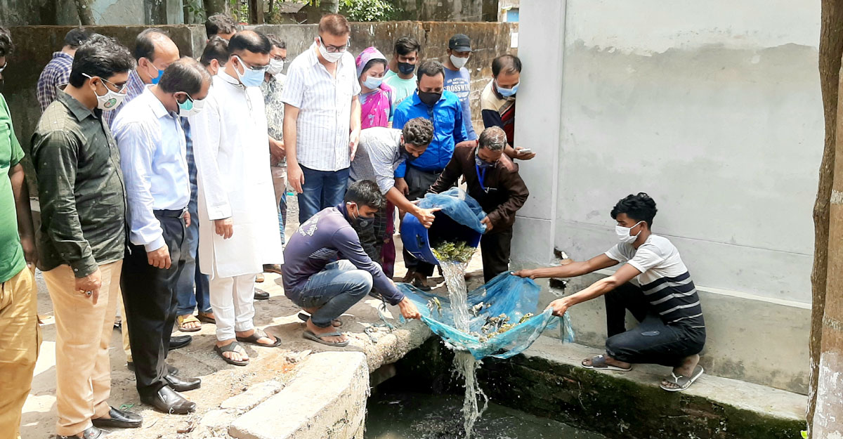 মঙ্গলবার (১৩ এপ্রিল) দুপুরে নগরীর হরিকিশোর রায় রোডস্থ মাকরজানি খালে মশার লার্ভা ধ্বংসকারী দুই হাজার ব্যাঙ অবমুক্ত করার মাধ্যমে ডেঙ্গু প্রতিরোধে জৈবিকভাবে মশক নিয়ন্ত্রণ কার্যক্রমের উদ্বোধন করেন মসিক মেয়র মো. ইকরামুল হক টিটু।