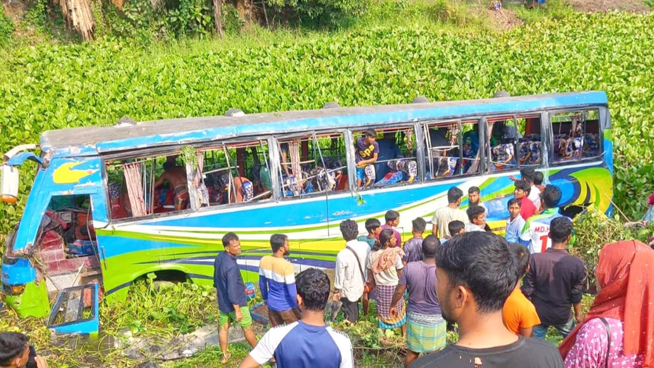 মানিকগঞ্জে নিয়ন্ত্রণ হারিয়ে বাস খাদে, আহত ১০