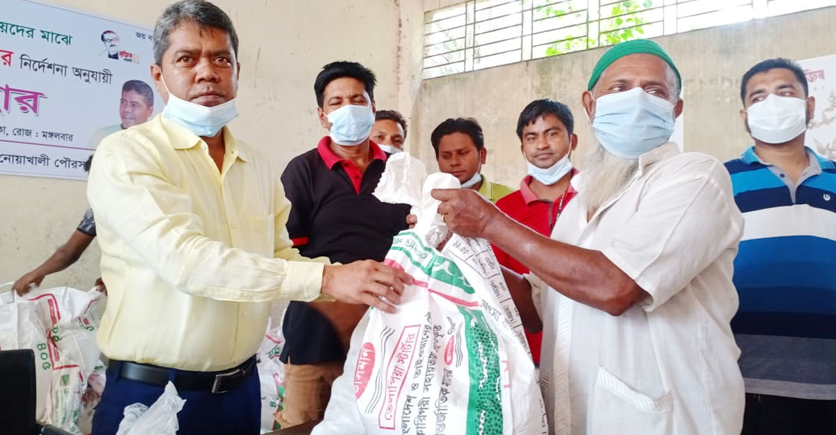 লকডাউনে কর্মহীন গণপরিবহন চালক-শ্রমিকদের মাঝে প্রধানমন্ত্রী শেখ হাসিনার পক্ষে শুভেচ্ছা উপহারসামগ্রী বিতরণ করেন নোয়াখালী পৌরসভার মেয়র শহিদ উল্যাহ খাঁন। এ সময় তিনি বলেন, পরিবহন শ্রমিকরা মানবেতর জীবনযাপন করছেন।