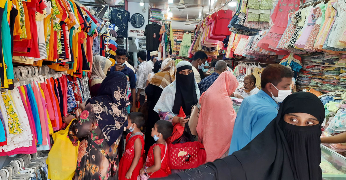 নাম প্রকাশে অনিচ্ছুক একাধিক ব্যবসায়ী ঢাকা পোস্টকে বলেন, আজ ৫টা পর্যন্ত স্বাস্থ্যবিধি মেনে দোকান খোলা রাখার কথা। ক্রেতা বেশি হওয়ায় সব স্বাস্থ্যবিধি মানা সম্ভব হচ্ছে না। তবে ঈদকে সামনে রেখে অনেকেই দোকানে অতিরিক্ত মালামাল উঠিয়েছেন। এখন সেটা তো আর আজকের মধ্যে কোনোভাবেই বিক্রি সম্ভব হবে না।