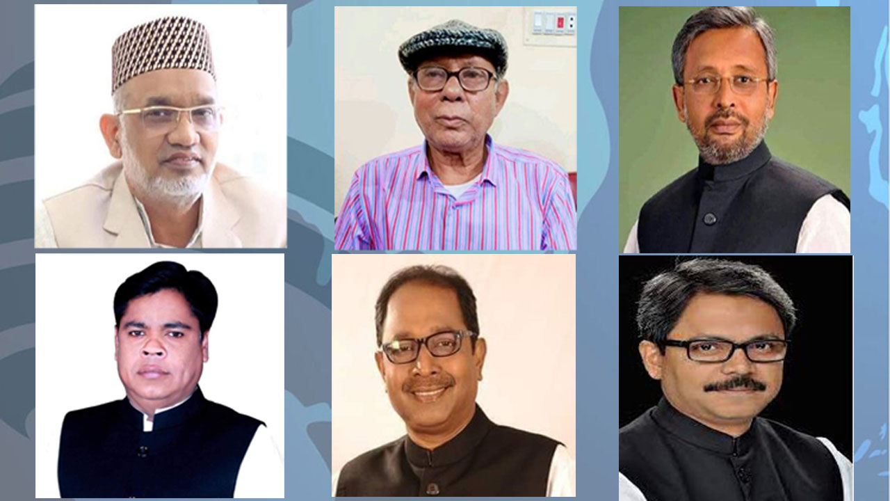 বাম থেকে রাজশাহী-১ ওমর ফারুক চৌধুরী, রাজশাহী-২ মোহাম্মদ আলী কামাল, রাজশাহী-৩ আসাদুজ্জামান আসাদ, রাজশাহী-৪ আবুল কালাম আজাদ, রাজশাহী-৫ আব্দুল ওয়াদুদ দারা, রাজশাহী-৬ শাহরিয়ার আলম।