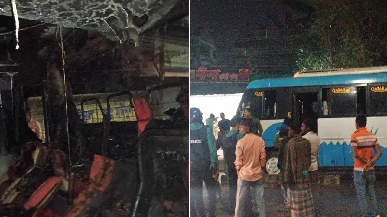 খুলনায় দাঁড়িয়ে থাকা বাসে আগুন