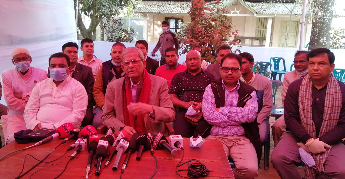 ঠাকুরগাঁওয়ে নিজ বাসভবনে মঙ্গলবার সংবাদ সম্মেলনে মির্জা ফখরুল ইসলাম আলমগীর