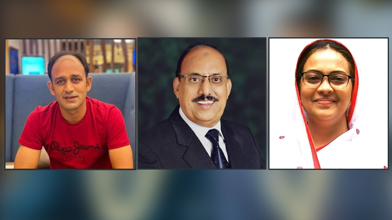 বাম থেকে ব্যারিস্টার সৈয়দ সায়েদুল হক সুমন, ডা. মুশফিক হুসেন চৌধুরী ও অ্যাডভোকেট কেয়া চৌধুরী