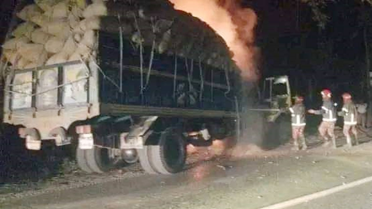 দিনাজপুরে মধ্যরাতে ধানবোঝাই ট্রাকে আগুন