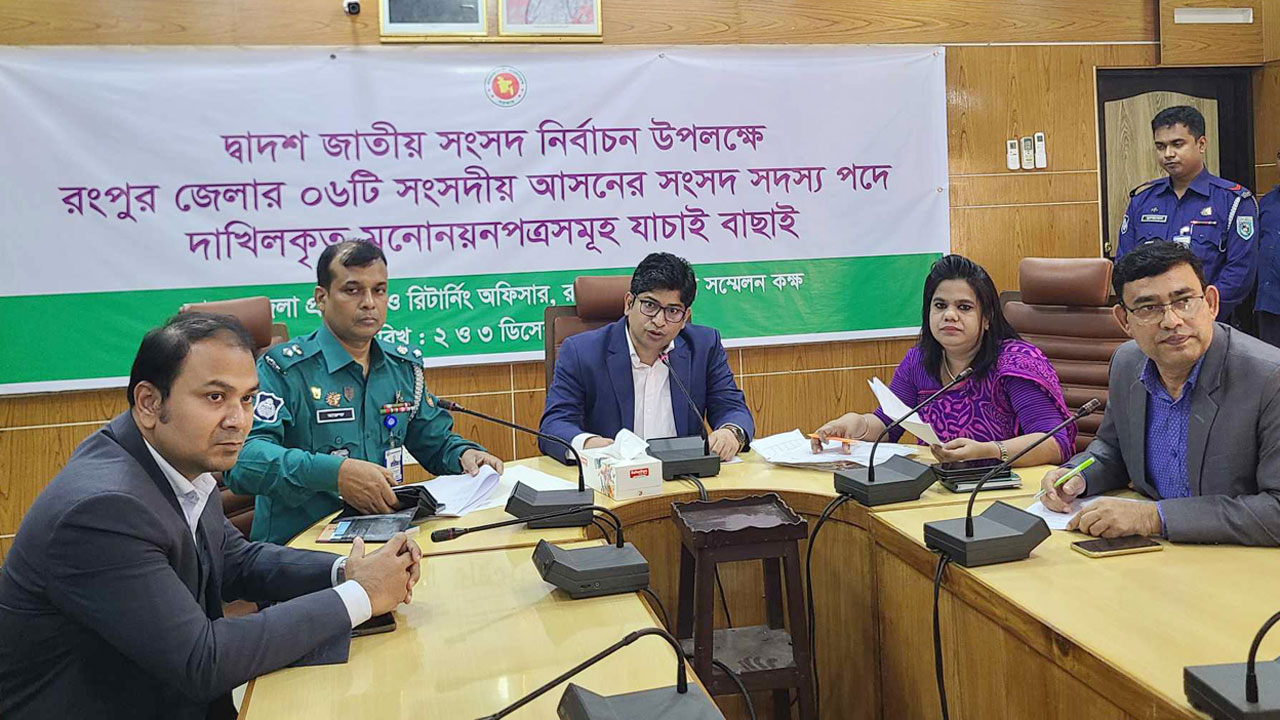 রোববার (৩ ডিসেম্বর) সকাল থেকে বিকেল ৪টা পর্যন্ত রংপুর জেলা প্রশাসকের কার্যালয়ে যাচাই-বাছাই কার্যক্রমের দ্বিতীয় দিনে রংপুর-৪ (পীরগাছা ও কাউনিয়া), রংপুর-৫ (মিঠাপুকুর) এবং রংপুর-৬ (পীরগঞ্জ) আসনে ২২ জন প্রার্থীর মনোনয়নপত্র যাচাই-বাছাই হয়।