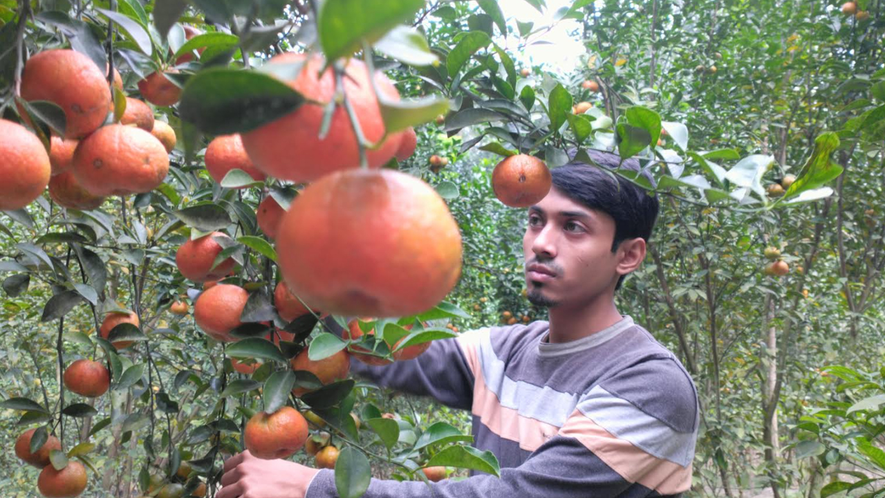 চায়না কমলার চাষ করে লাখ টাকা আয় কলেজছাত্র শাওনের