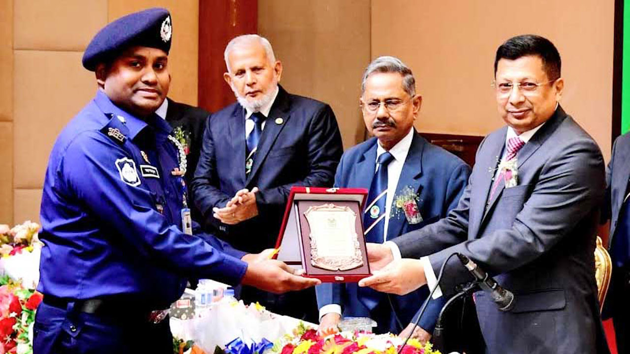 শনিবার (৯ ডিসেম্বর) বেলা ১১টার দিকে রাজারবাগ পুলিশ অডিটোরিয়ামে এসএম আশরাফুল আলমের হাতে পুলিশের মহাপরিদর্শক (আইজিপি) চৌধুরী আবদুল্লাহ আল-মামুন ক্রেস্ট ও সনদ তুলে দেন।