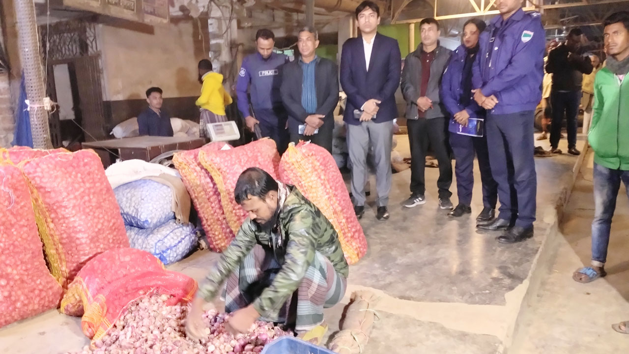 তিনি আরও বলেন, হানিফ স্টোর নামে এক দোকানের ব্যবসায়ীর নিকট পেঁয়াজের ক্রয় রশিদ না থাকায় তাকে এক হাজার টাকা জরিমানা করা হয়েছে। পেঁয়াজের সরবরাহ রয়েছে এবং বাজারে সহনীয় মূল্যে পেঁয়াজ পাওয়া যাচ্ছে। এ অভিযান অব্যাহত থাকবে।