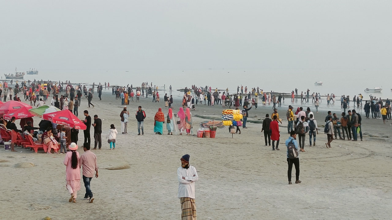 কুয়াকাটায় হাজারো পর্যটক, খুশি ব্যবসায়ীরা