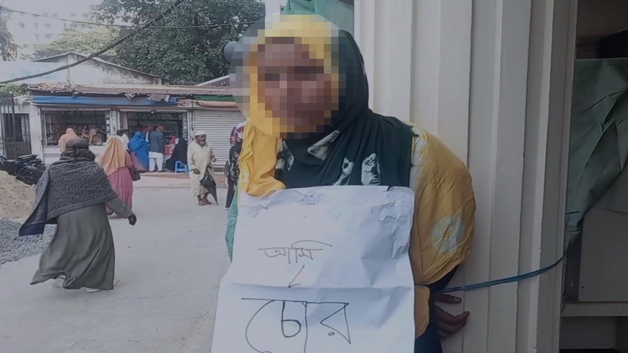 গলায় ‘আমি চোর’ লেখা প্ল্যাকার্ড ঝুলিয়ে নারীকে নির্যাতন