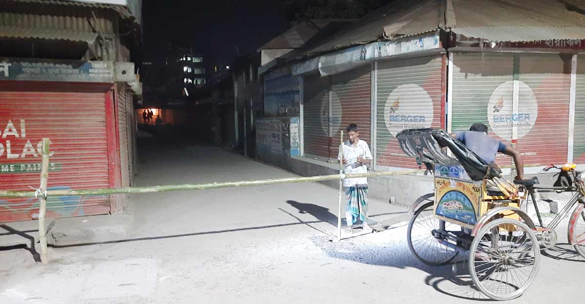 একই সড়কস্থ মুক্তিযোদ্ধা গলিতে বাঁশ দিয়ে রাস্তা বন্ধের কাজ চলছে। পর্যায়ক্রমে নির্ধারিত সব সড়কগুলোই এভাবে বন্ধ করে দেওয়া হবে বলে জানান কর্মরতরা।