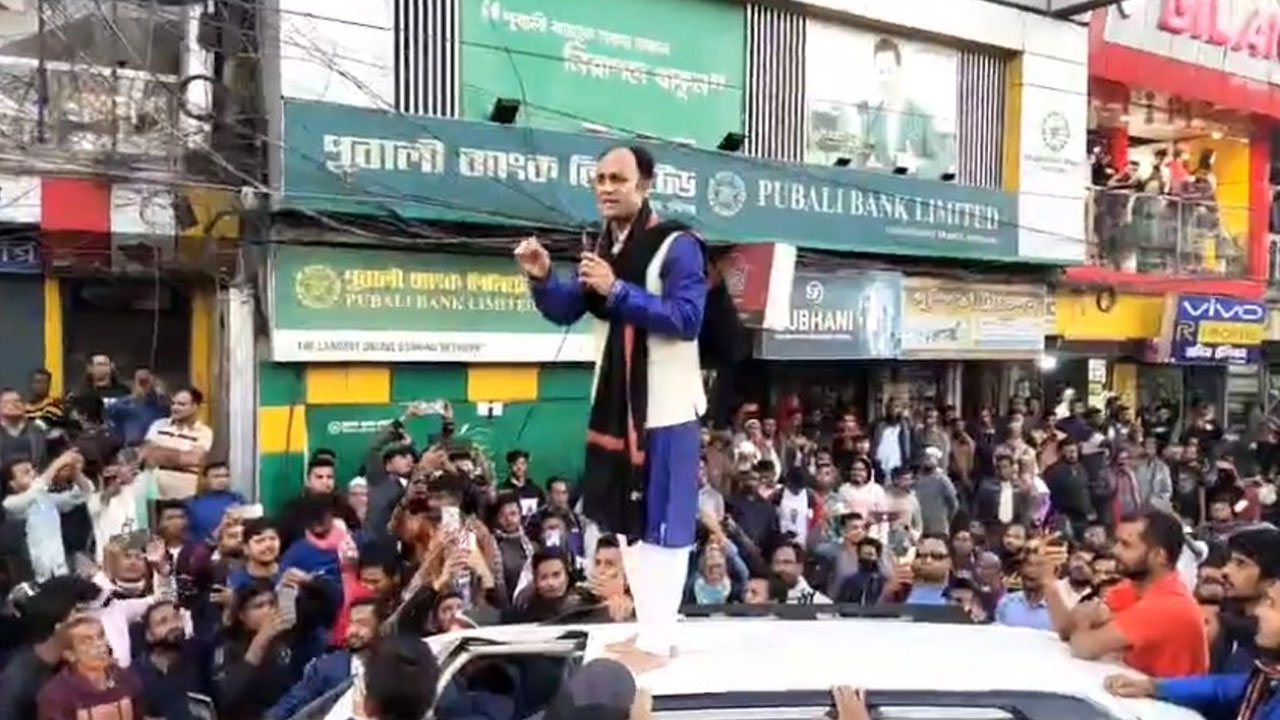 সোমবার (১৮ ডিসেম্বর) বিকেলে হবিগঞ্জের চুনারুঘাটে প্রথম নির্বাচনী পথসভায় এসব কথা বলেন হবিগঞ্জ-৪ আসনে স্বতন্ত্র প্রার্থী ব্যারিস্টার সৈয়দ সায়েদুল হক সুমন। চুনারুঘাট শহরের মধ্যবাজারে হাজারো মানুষের উপস্থিতিতে এই পথসভায় তিনি তার গাড়ির ওপর দাঁড়িয়ে বক্তব্য দেন।