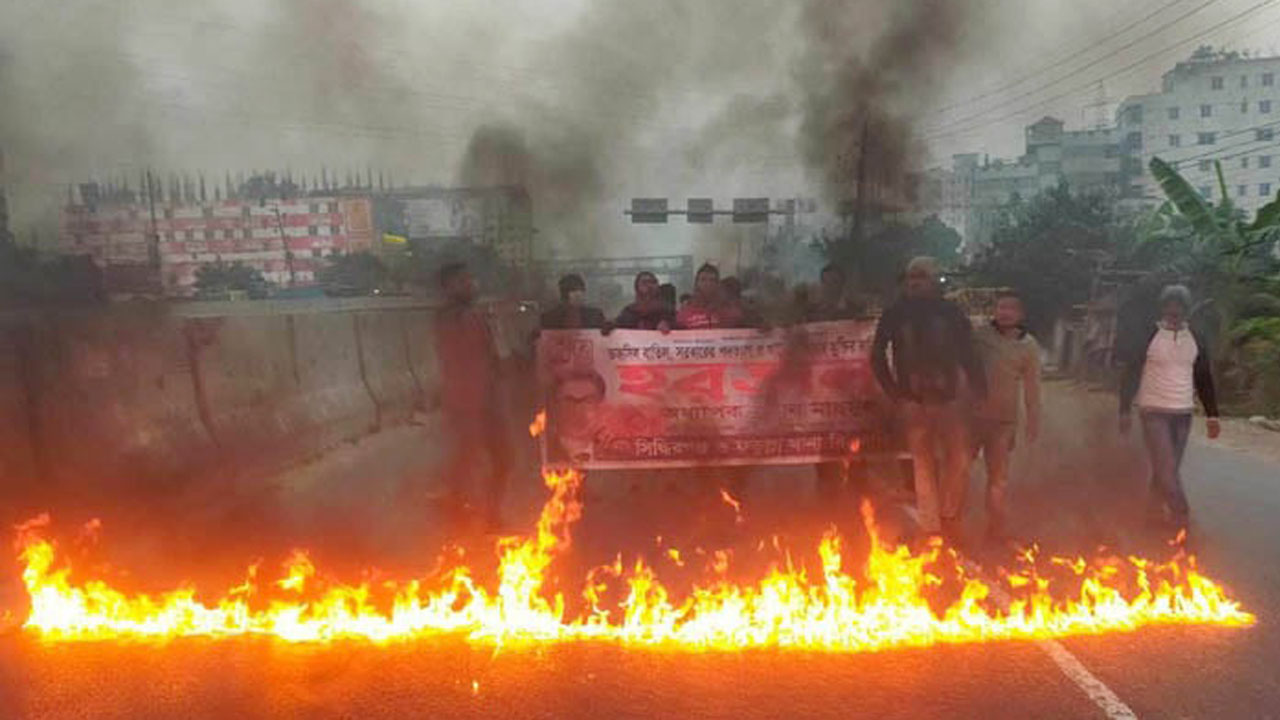 বিএনপির ডাকা সকাল-সন্ধ্যা হরতালের সমর্থনে বিএনপির নেতাকর্মীরা নারায়ণগঞ্জের সিদ্ধিরগঞ্জে বিক্ষোভ মিছিল করেছেন। এ সময় তারা সড়কের ওপর আগুন জ্বালিয়ে বিভিন্ন স্লোগান দিতে থাকেন।