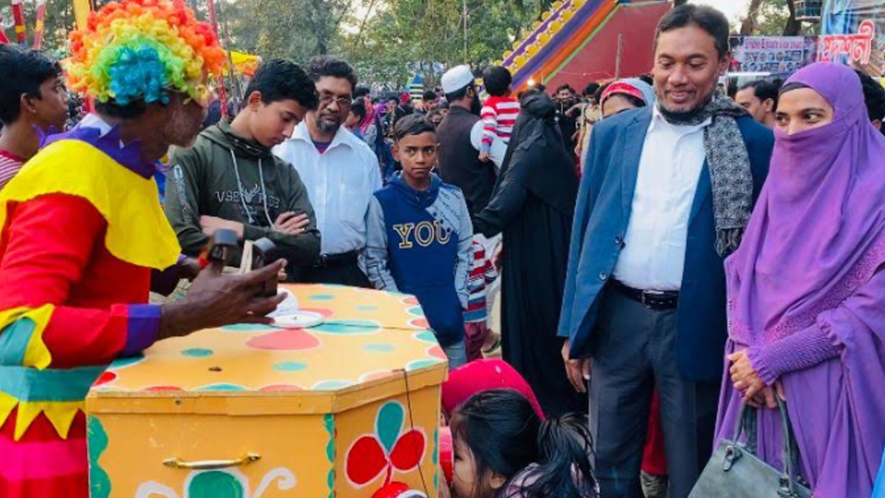 পরনে রঙবেরঙের পোশাক। মাথায় রঙিন চুল, মুখে জোকারের মুখোশ পরে ছোট-বড় সবাইকে বায়স্কোপ দেখাচ্ছেন। যেকোনো মেলাতেও এমন দৃশ্য আর চোখে পড়ে না। এক সময়কার গ্রাম বাংলার ঐতিহ্যবাহী বিনোদন ছিল এই বায়োস্কোপ। যেটি এখন বিলুপ্তপ্রায়। কিন্তু এই বিলুপ্তপ্রায় ঐতিহ্য ধরে রাখতে ৩০ বছর ধরে বায়োস্কোপ দেখিয়ে শিশুসহ বিভিন্ন শ্রেণি পেশার মানুষদের আনন্দ দিয়ে চলেছেন মো. মাইন উদ্দিন (৫০)। মানুষকে এভাবে বিনোদন দিয়েই চলছে তার সংসার ও জীবন যাত্রা।