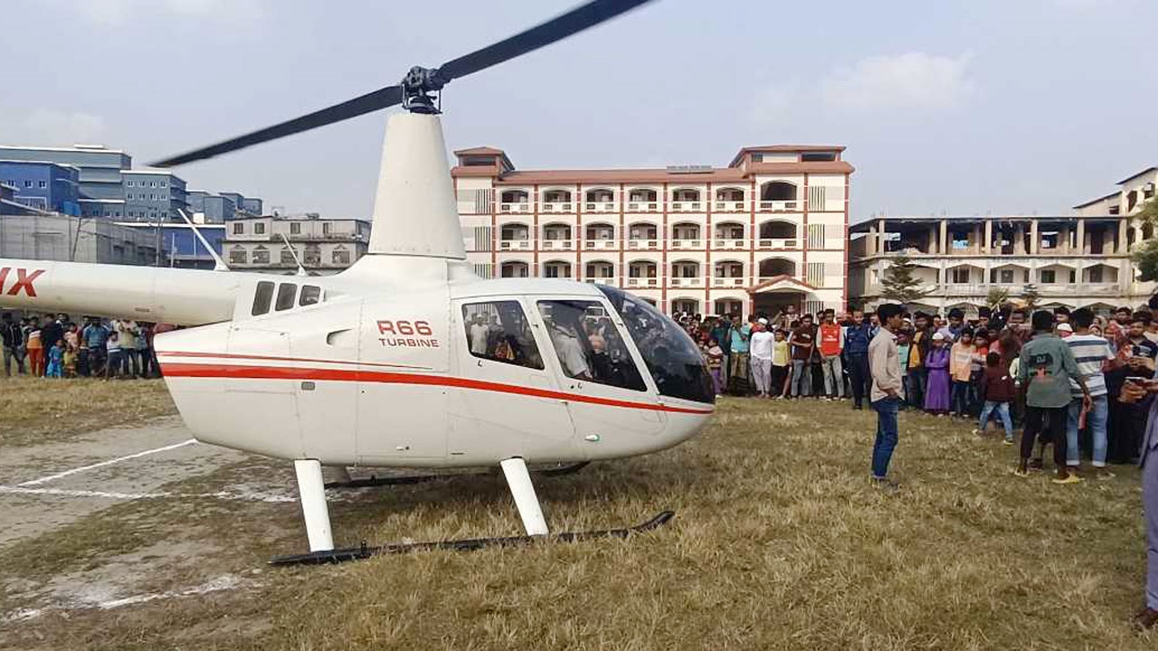 এদিকে, হেলিকপ্টার আসার খবরে শিশু-কিশোর থেকে শুরু করে যুবক-বৃদ্ধরা হেলিকপ্টারের সামনে এসে ভিড় জমান।