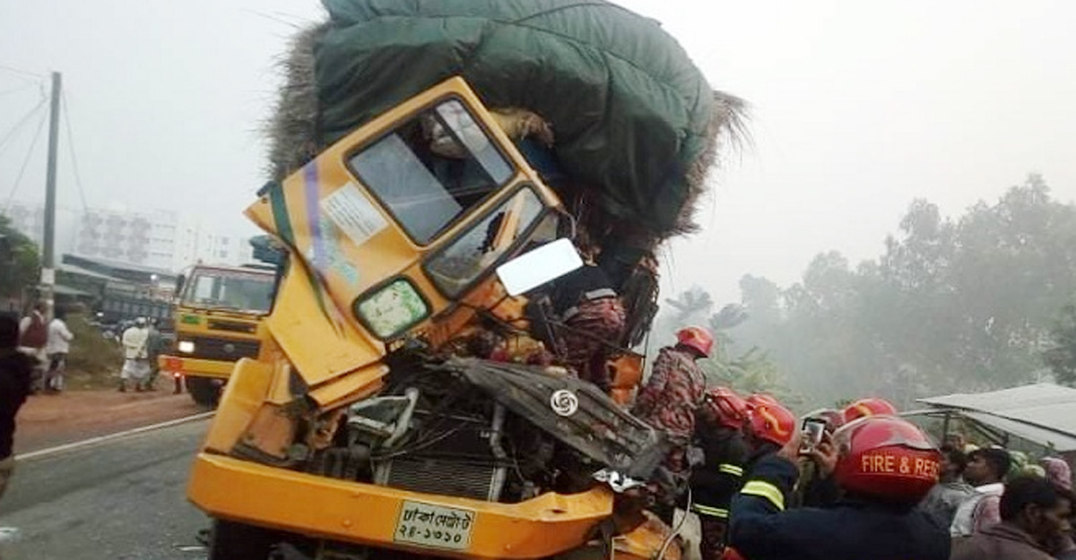 দাঁড়িয়ে থাকা ট্রাককে আরেক ট্রাকের ধাক্কা, নিহত ৩