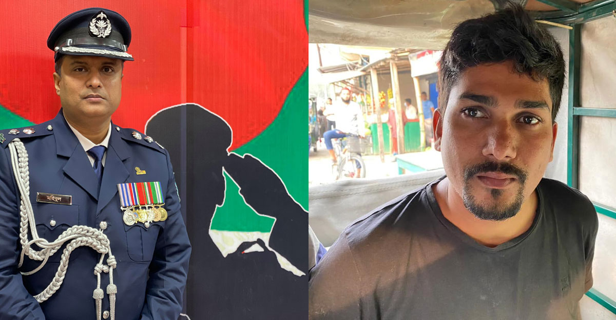 পাবনার পুলিশ সুপার মহিবুল ইসলাম খান (বামে) ও আটক মিরাজুল ইসলাম শেখ