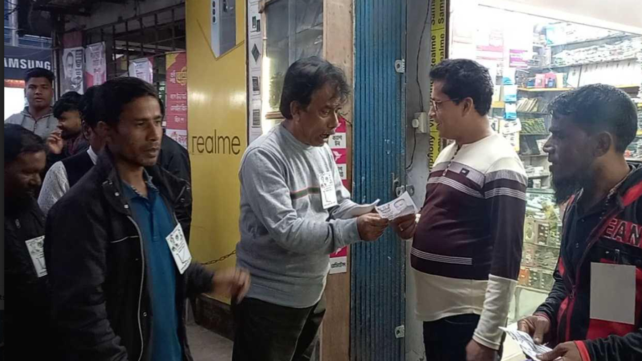 শনিবার (৩০ ডিসেম্বর) বিকেলে জেলা শহরের সিনেমাহল রোডে ট্রাক প্রতীকের পোস্টার লিফলেট নিয়ে ভোটারদের কাছে ভোট চাইতে দেখা যায় তাদের। ওই সময় হ্যান্ড মাইকে প্রচারণা চালিয়ে আগামী ৭ জানুয়ারী দ্বাদশ জাতীয় নির্বাচনে ভোটারদের কেন্দ্রে গিয়ে ট্রাক প্রতীকে ভোট দেয়ার আহ্বান জানান তারা।