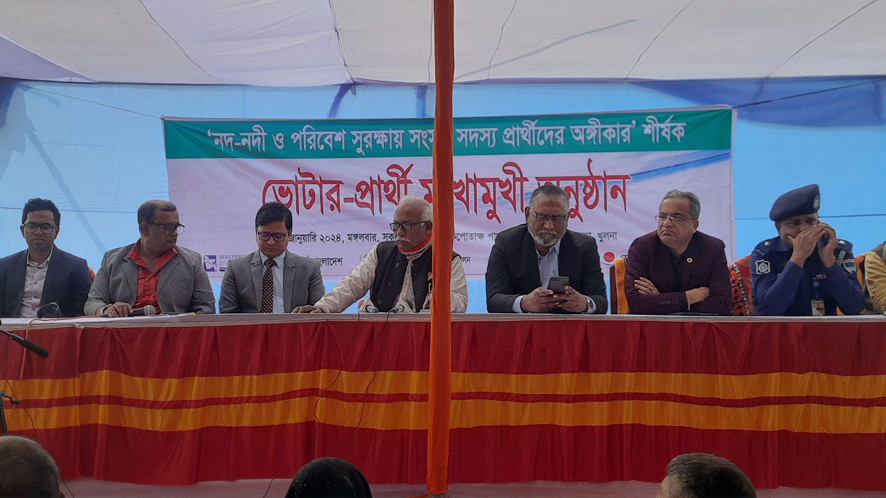 মঙ্গলবার (২ জানুয়ারি) সকালে খুলনার পাইকগাছা উপজেলার মাহমুদ কপোতাক্ষ পাড়ে ‘নদ-নদী ও পরিবেশ সুরক্ষায় সংসদ সদস্য প্রার্থীদের অঙ্গীকার’ শীর্ষক ভোটার-প্রার্থী মুখোমুখি অনুষ্ঠানের এসব কথা বলেন তারা।