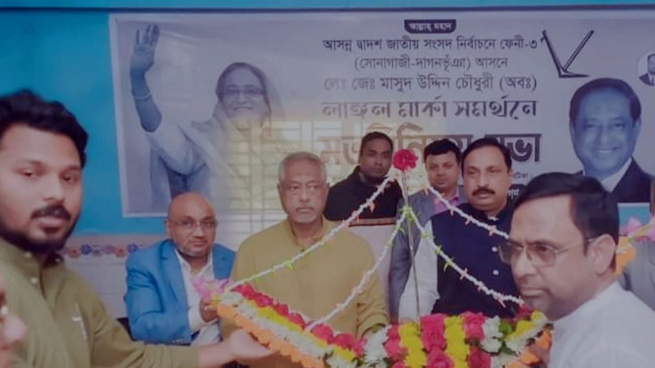 মতবিনিময় সভার ব্যানারে আওয়ামী লীগ সভানেত্রী শেখ হাসিনার ছবি ব্যবহার করার অভিযোগে ফেনী-৩ আসনে লাঙ্গল প্রতীকের প্রার্থী লে. জেনারেল (অব.) মাসুদ উদ্দিন চৌধুরীকে কারণ দর্শানোর নোটিশ (শোকজ) দেওয়া হয়েছে।
