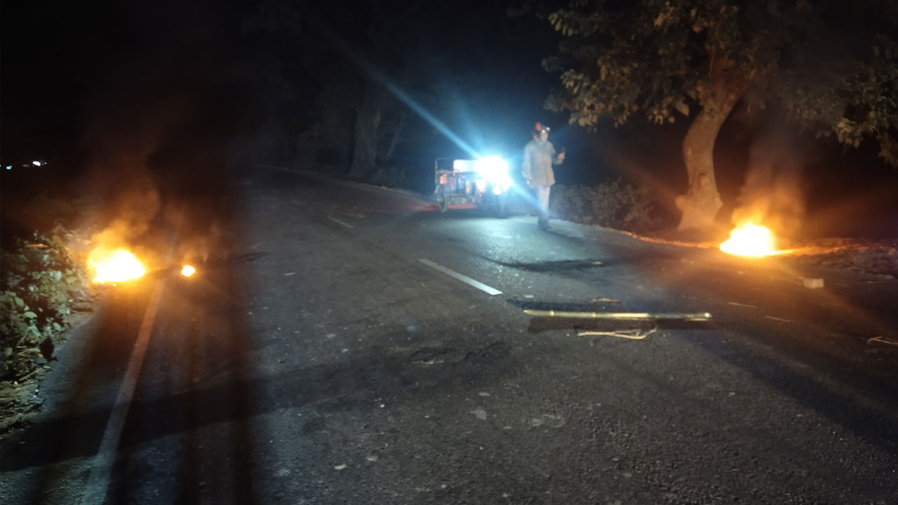 সিলেট-সুনামগঞ্জ মহাসড়কে আগুন জ্বালিয়ে গাড়ি ভাঙচুর