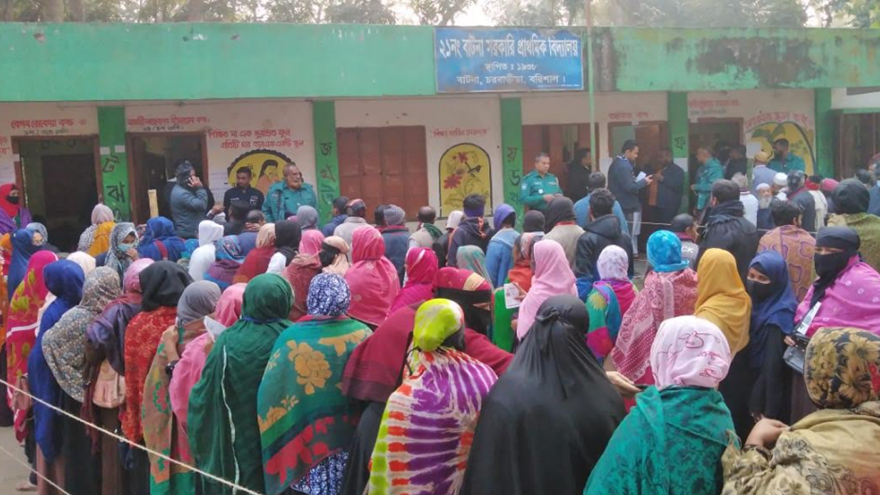 বরিশালে কুয়াশা উপেক্ষা করে কেন্দ্রে ভোটারদের ভিড়