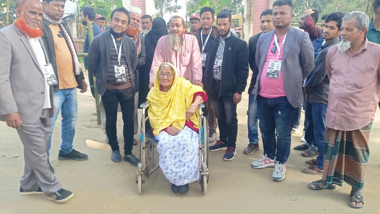 হুইলচেয়ারে ভোটকেন্দ্রে শতবর্ষী গোল বাহার