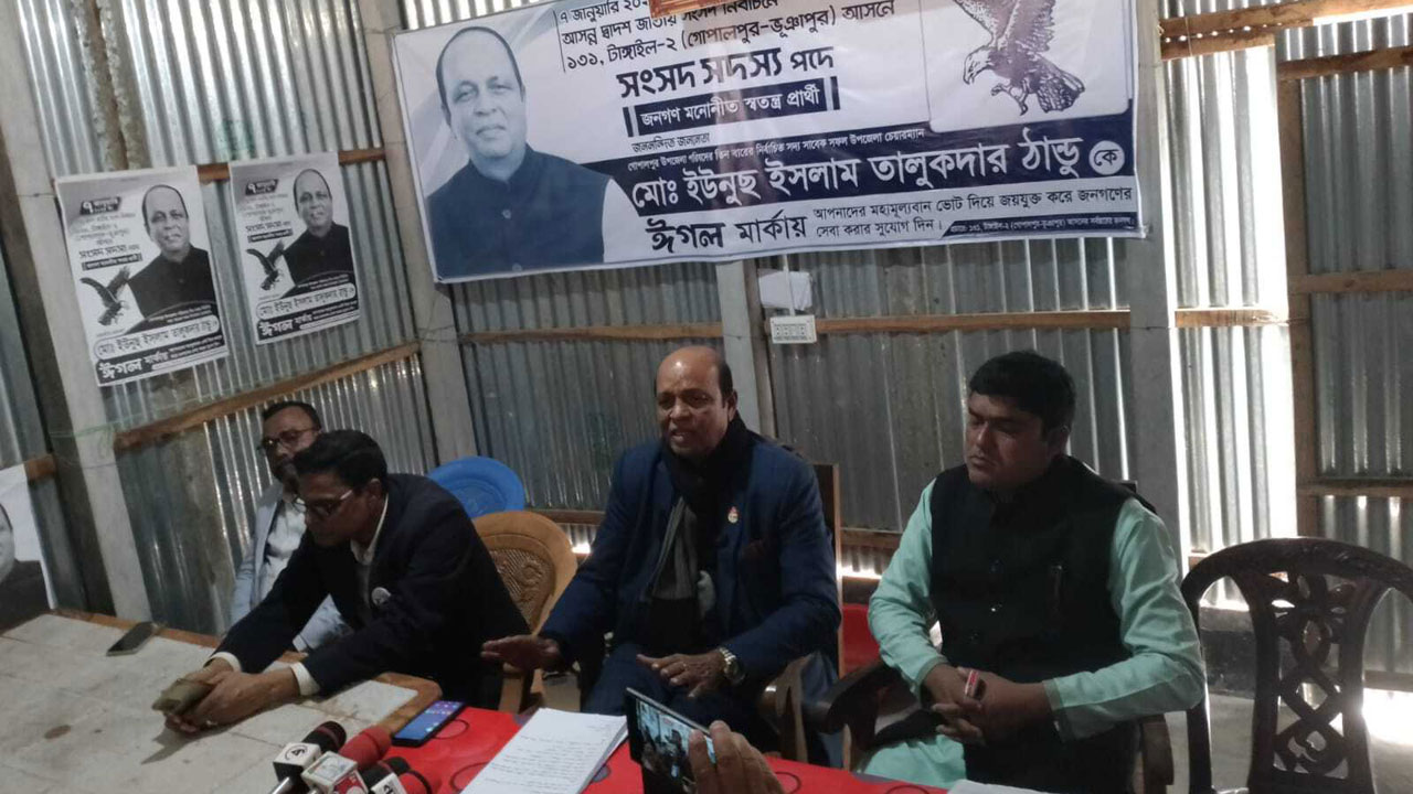 রবিবার (৭ জানুয়ারি) দুপুরে গোপালপুর উপজেলার ঝাওয়াইল বাজারে নিজের নির্বাচন অফিসে সাংবাদিক সম্মেলন করে ভোট বর্জনের ঘোষণা দেন।
